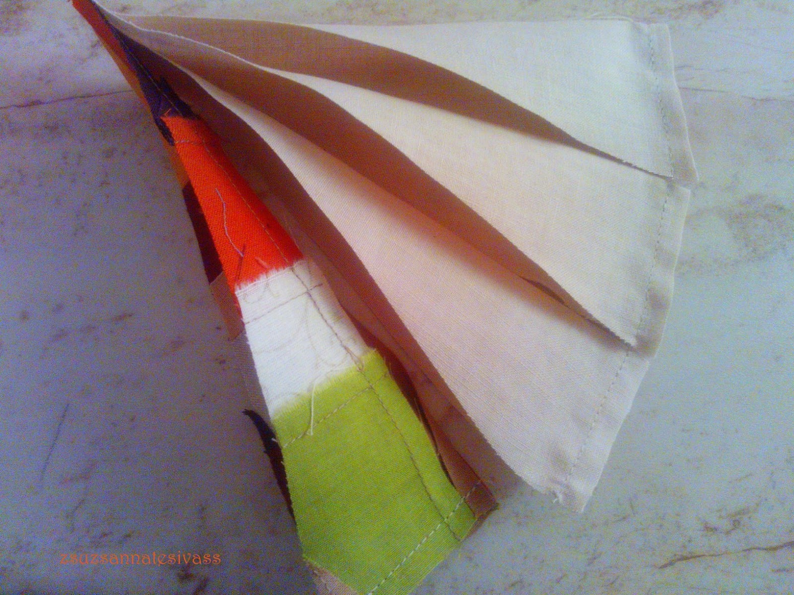 Ha kifordítás után a csücsökbe egy derékszögű kartont csúsztatunk,azonnal a helyére igazodik a varrás, amit a kartonnal együtt meg is vasalhatunk.